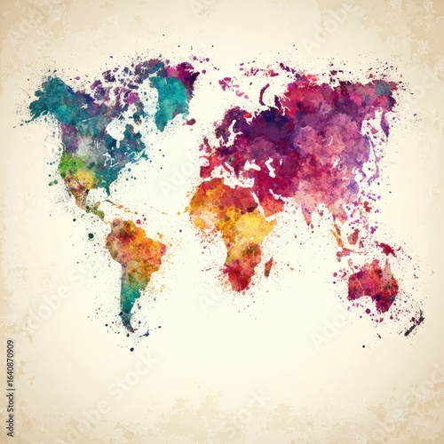 © Fajry, Fototapeta premium Abstract world map, watercolor splatter effect