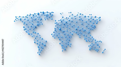 © sakulkarn, Fototapeta premium Abstract world map with connected dots and lines in blue tones