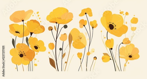 © kkkiim graphic, Obraz premium Abstract Yellow Flower Vector Background Design with Soft Pastel Colors on White Background