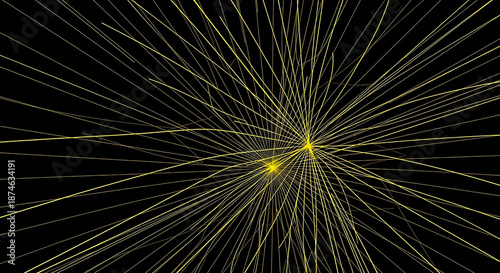 © Rowshan, Obraz premium Abstract yellow light streaks radiating from a central point on black background