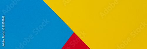 Fototapeta premium Abstract yellow, red and light blue color paper geometry composition banner background
