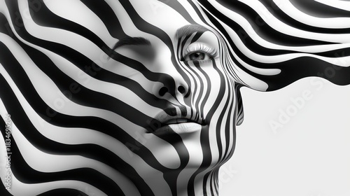 Obraz premium Abstract zebra stripes woman face, stylized portrait, art, digital