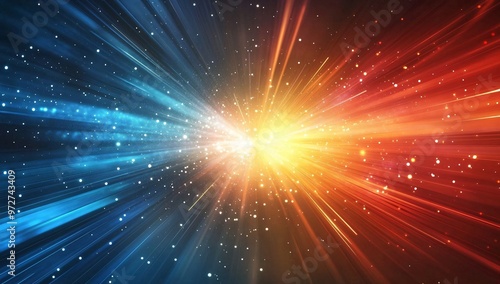 © Unic, Obraz premium Abstraction with rays and neon. Futuristic empty stage.