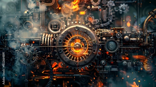Fototapeta premium Abstracts background of a metal gears of machinery, Generative AI...