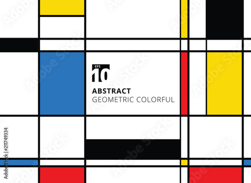 © phochi, Naklejka premium Abstrakcjonistyczny geometryczny kolorowy wzór dla ciągłej replikaci z liniami na białym tle.