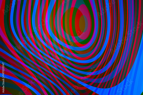 © Henryk Guziak, Fototapeta premium Abstrakcyjna grafika z kolorowymi falami i okręgami w odcieniach niebieskiego, czerwonego i zielonego, cyfrowa kompozycja optyczna.