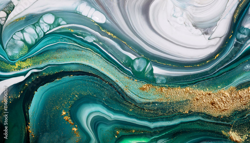 Obraz premium Abstrakcyjne jasne tło do projektu, tapeta, kolor biały, złoty, zielony, czarny, tekstura marmuru, wzór w kształcie fal