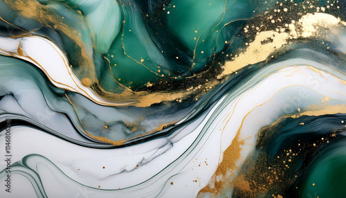 Obraz premium Abstrakcyjne jasne tło do projektu, tapeta, kolor biały, złoty, zielony, czarny, tekstura marmuru, wzór w kształcie fal