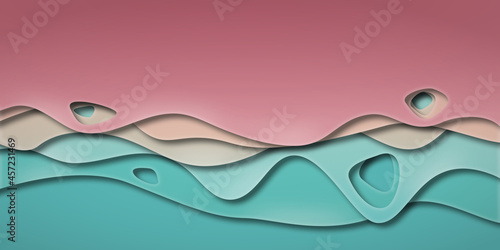 Obraz premium Abstrakcyjne tło - kolorowe warstwy, kształty, światla i cienie. Dynamiczna kompozycja, wycinana, geometryczne tło na okładki, banery, ulotki, plakaty, tapeta na blog lub social media story.