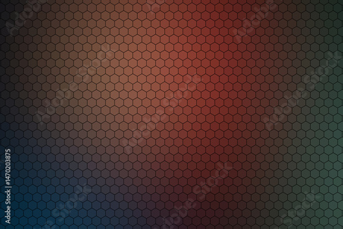 © Henryk Guziak, Obraz premium Abstrakcyjne tło z siatką heksagonalną i gradientem w odcieniach czerwieni, niebieskiego i zieleni