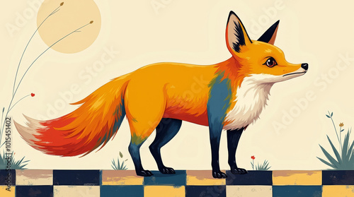 Obraz premium Abstrakte Illustration eines stilisierten Fuchses mit geometrischen Formen