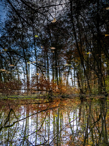 Obraz premium Abstrakte Spiegellung eines Waldsees