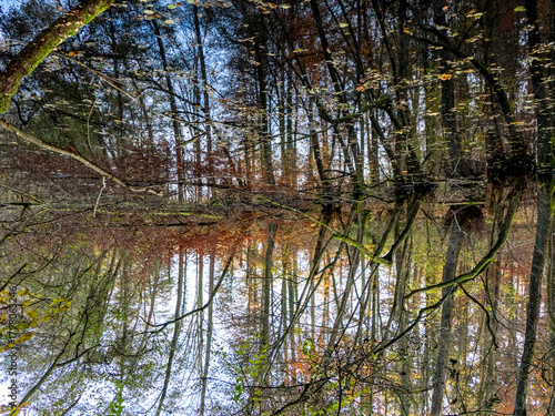 Obraz premium Abstrakte Spiegellung eines Waldsees