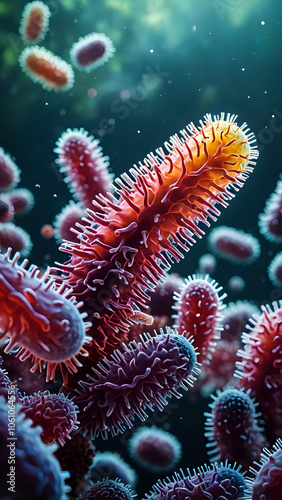 Fototapeta premium Abstraktion Fantasie über ein Thema aus dem Leben der Mikroben 9х16....