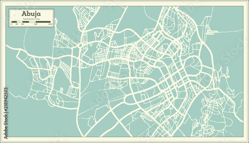 © BooblGum, Fototapeta premium Abuja Nigeria City Map in Retro Style. Outline Map.