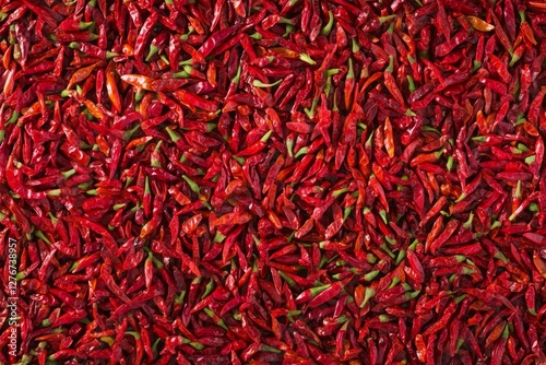© mehaniq41, Fototapeta premium Abundance of red chili peppers filling frame. Neural network AI generated