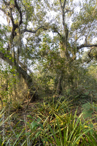 © Elehi, Fototapeta premium Abundancia de plantas de verano cubiertas de heno en área de manglares durante el día