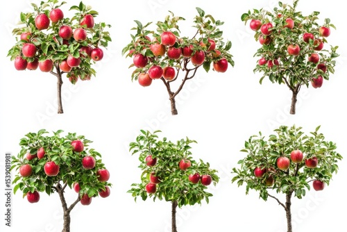 © Ali, Fototapeta premium Abundant apple trees with vibrant red fruits nature s bounty orchard harvest on White Background. Generative Ai