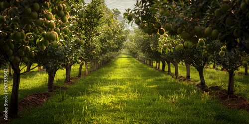 © AkuAku, Naklejka premium Abundant Kiwi Orchard Trees Abundantly Laden with Ripe Fruit