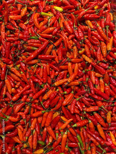 © dearmyfleurie, Fototapeta premium Abundant Pile of Red Bird's Eye Chili Peppers