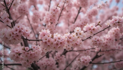 © ILIUSIA, Fototapeta premium Abundant Pink Cherry Blossoms on a Tree Branch