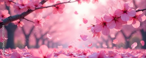 © dadtophoto, Fototapeta premium Abundant pink sakura petals create a swirling, falling effect , cherry, subtle, gentle