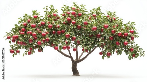 © Ika, Naklejka premium Abundant red apples on a lush tree against a white background