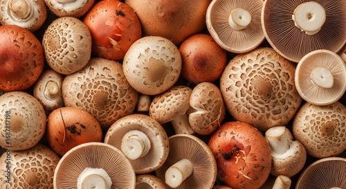 Fototapeta premium Abundant variety of fresh, earthy mushrooms ready for culinary creation and healthy eating