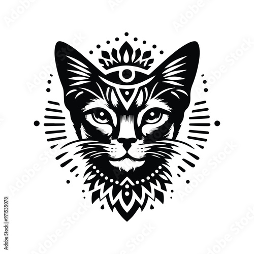 Obraz premium Abyssinian cat in bohemian black and white silhouette illustration