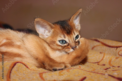 © alenushkasaransk, Fototapeta premium abyssinian kitten portrait