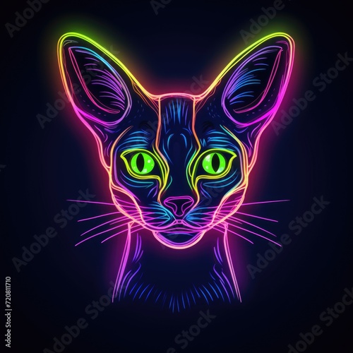 © Vladyslav Andrukhiv, Fototapeta premium Abyssinian. Neon outline icon with a light effect