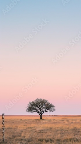 © Alien, Obraz premium acacia tree in the savannah, with a clear sky and a pinkish tint on one side