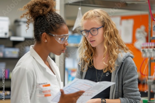 Fototapeta premium Academic Advising Office, Students Conducting Research in Science Lab, Campus...