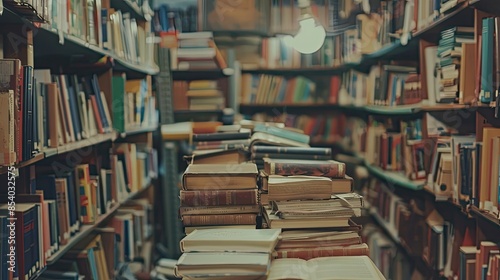 © Wilujeng Graphic, Obraz premium Academic bookshelf with organized textbooks