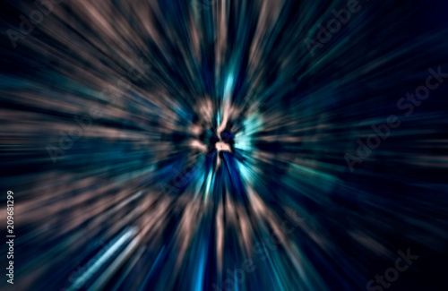Fototapeta premium Acceleration speed motion, Light and stripes moving fast over dark background