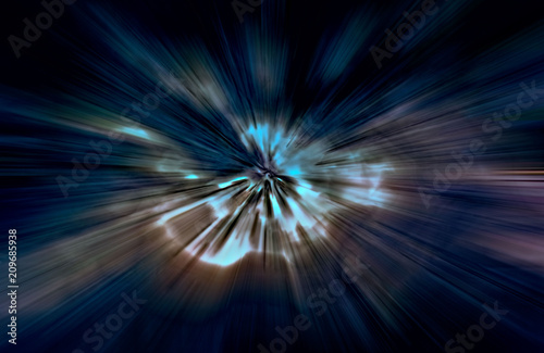 © PRB ARTS, Fototapeta premium Acceleration speed motion, Light and stripes moving fast over dark background
