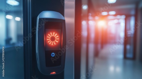 © StarzDream, Obraz premium Access Control Device in Modern Office Environment