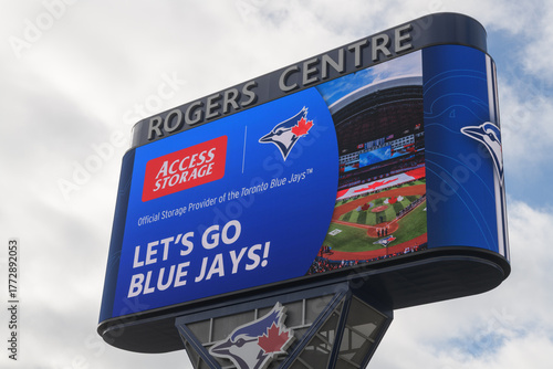 Fototapeta premium Access Storage ad and Toronto Blue Jays sponsor displayed on the Rogers...