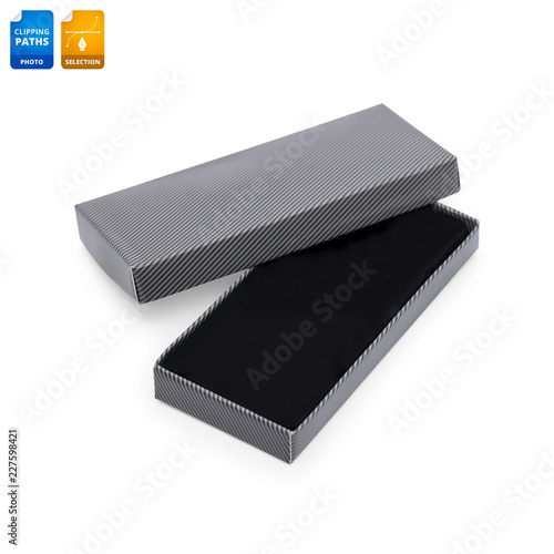 © Lemonsoup14, Fototapeta premium Accessories box isolated on white background. Template of gift box in stripe pattern texture. Clipping paths object.