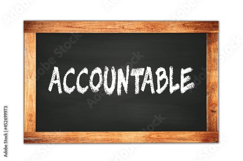 Fototapeta premium ACCOUNTABLE text written on wooden frame school blackboard.