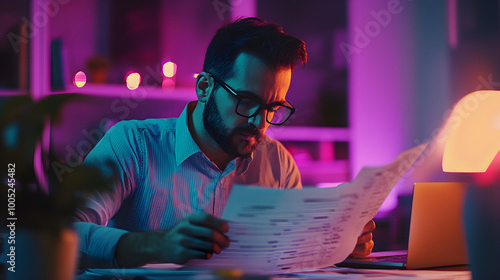 © Augusto, Obraz premium Accountant carefully reviewing client's tax returns at office desk