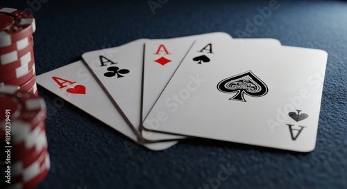 © Candra, Obraz premium Ace High Poker Hand with Chips on Blue Felt.