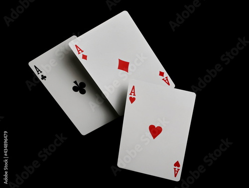 Obraz premium Aces, poker and gambling playing cards, isolated on black background,...