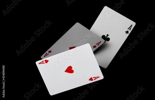Obraz premium Aces, poker and gambling playing cards, isolated on black background,...