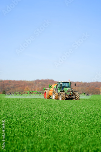 Naklejka premium Ackerbau - Pflanzenschutz, Traktor mit Feldspritze
