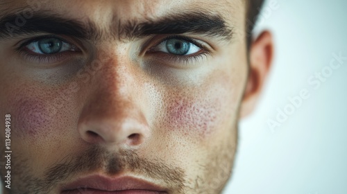 Obraz premium AcneClose up of man with problematic skin and scars from acne