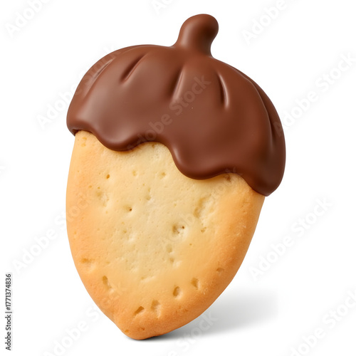© Nataly, Fototapeta premium Acorn-shaped cookie with chocolate glaze, festive treat