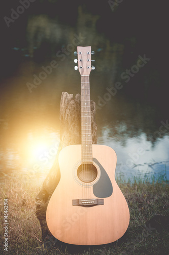 Obraz premium acoustic guitar background on riverside.