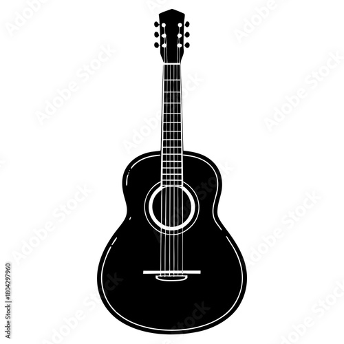 Obraz premium Acoustic guitar black silhouette musical instrument flat icon design