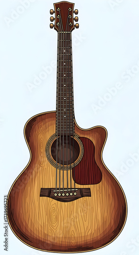 Fototapeta premium Acoustic Guitar Illustration Detailed Wood Grain Instrument